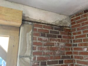 We visited the site to review the existing conditions and compare those to the available as-built drawings. Atlas recorded the existing conditions with photos, notes, and measurements. During the initial site visit, plywood enclosure was already erected under the deteriorated areas to prevent the falling the the any deteriorated concrete. Additional notes were taken on the types of materials that comprised the structure of the lower-level entrance including but not limited to walls, ceiling, fascia, and the walkway over the entrance. This and other information gathered during the fieldwork and from the as-builts was helpful in determining the ultimate loading.